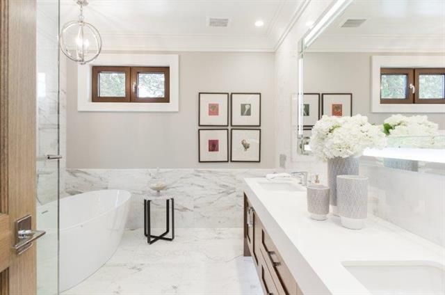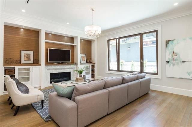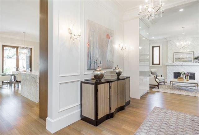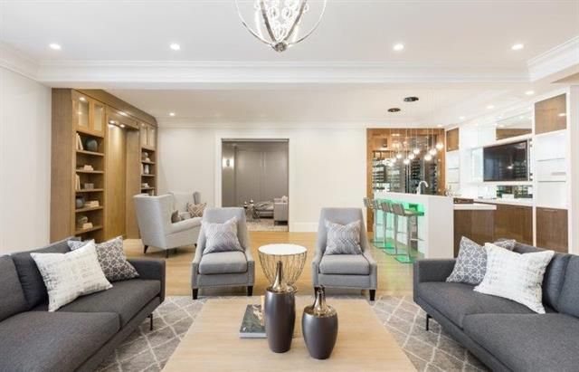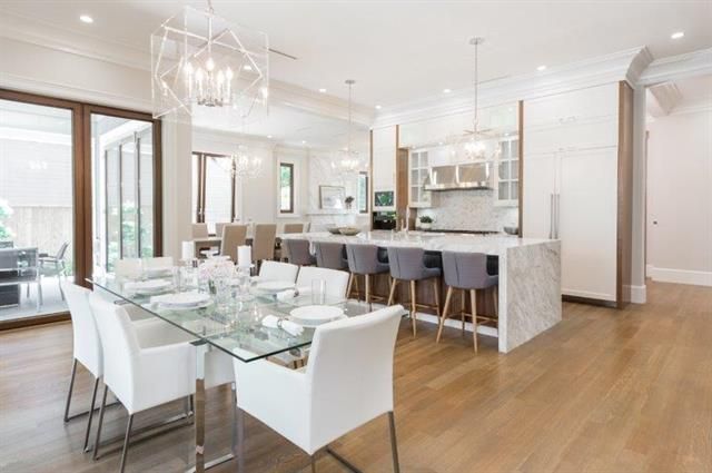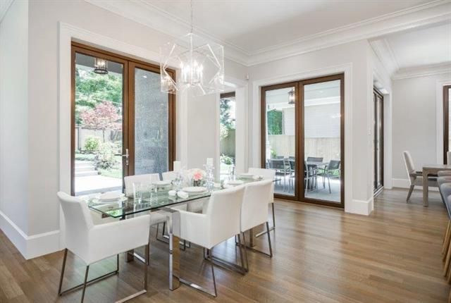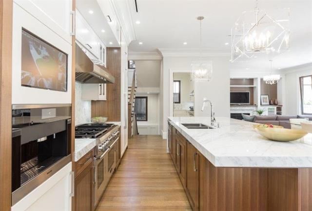 Modern & stylish. Gorgeous home 5,485 sq ft of luxurious living. Main floor features open plan, living, dining room, den & marble island & counter tops. Wok kit & large family room, eclipse door that open to a covered dining area with beautiful private garden. Top of the line appliances. Upper floor, 4 large bdrms each with ensuite. Master bdrm with large walking closet and spa like ensuite. Lower floor height ceiling, wine cellar, bar with special lighting features, equipped media room & spacious rec room with F/P. Other includes audio/video smart homes feature, radiant heat A/C, and 3-car garage.