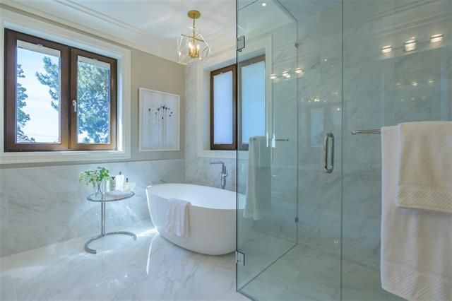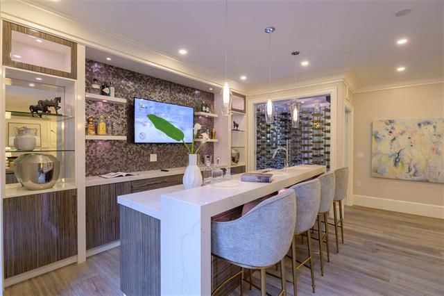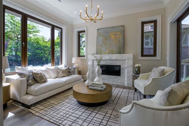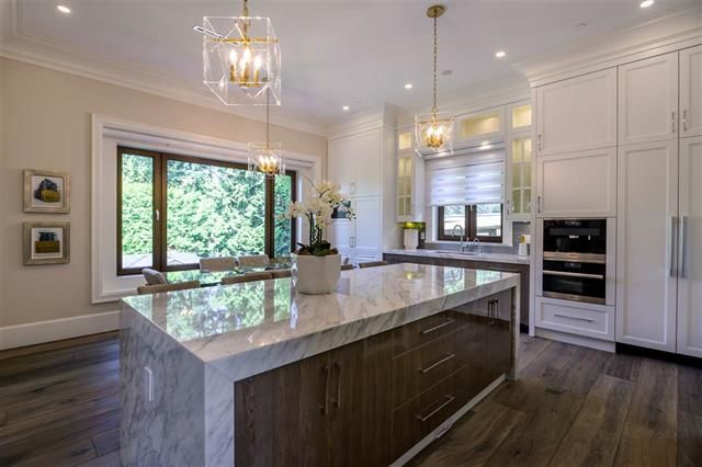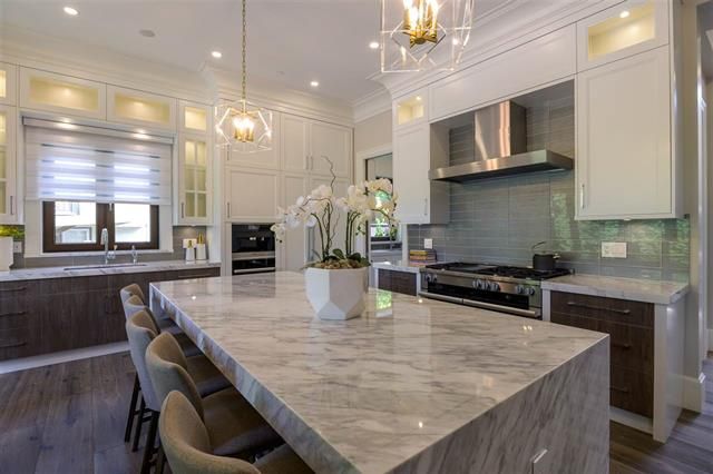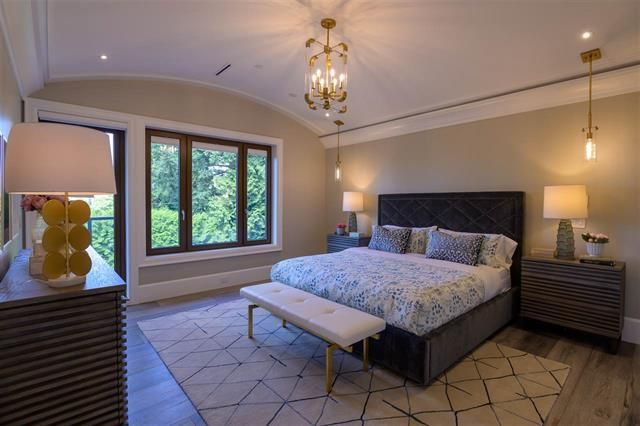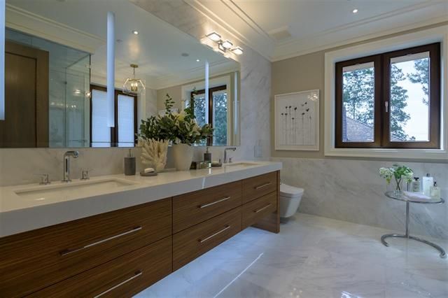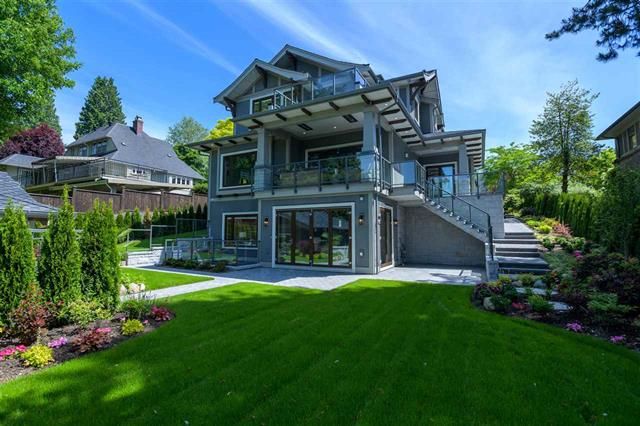 Brand new 4 level, 5 bed 6.5 bath Westcoast Modernism home in prestigious neighbourhood of Shaughnessy 2. Walk in from the front entrance through a solid core front door into an open plan dressed with Austrian crystal chandeliers & accents also White Oak solid wide plank flooring & radiant heating. West exposure & the many large turn-&-tilt windows bring in natural light. Kitchen & wok kit. feature high gloss cabinets, Calcutta Gold waterfall countertop, top-of-the-line appliances include cappuccino machine & steam oven. Entertaining is a pleasure with large living areas with marble fire places, large patios with garden view, theatre room, wet bar & temp controlled wine room. Elevator to all floors. 3 car garage + 1 front gated parking. Close to Kerrisdale Village & renowned schools