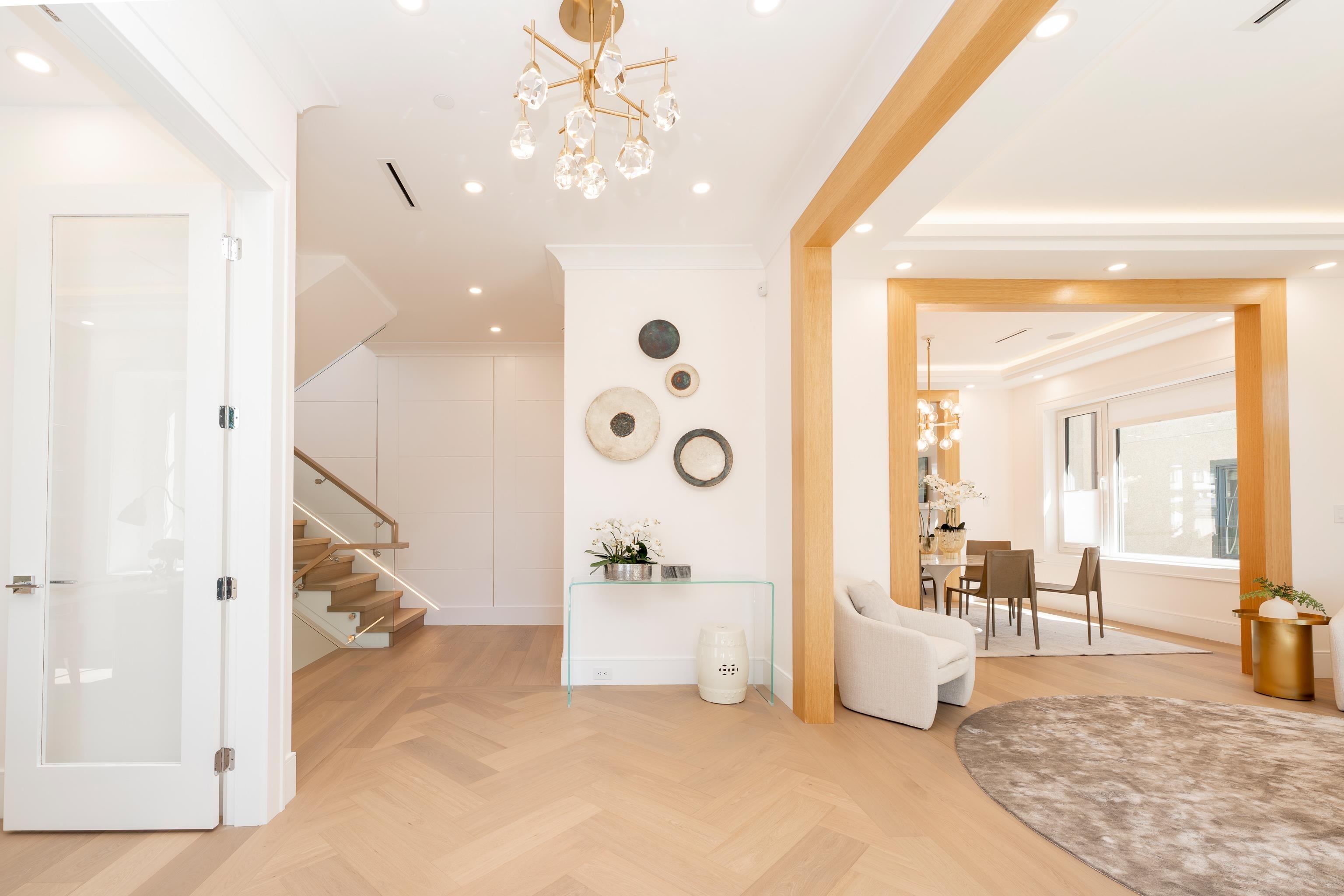 Gorgeous BRAND NEW custom built home in the picturesque SW Marine neighbourhood. Features a luxurious open floor plan w/ high ceiling, exquisite custom millwork, radiant floor heating, A/C, tilt+turn windows, power blinds, smart home system, built in surround sound system & 441 sf patio space. Main floor is equipped w/ gourmet+wok kitchen w/ oversized island & Miele appliances, &eclipse doors. The exquisite Master has large w/i closet and an ensuite with marble tiles. Downstairs features a sauna, wet bar, rec room, and fully equipped theatre room with dazzling starlight ceiling. Only a short distance to the Arbutus Greenway, grocery, parks, and shops & restaurants of Kerrisdale. Includes 2 car garage with epoxy flooring & a 2 storey laneway house, 1 parking pad, & 2 EV charger.